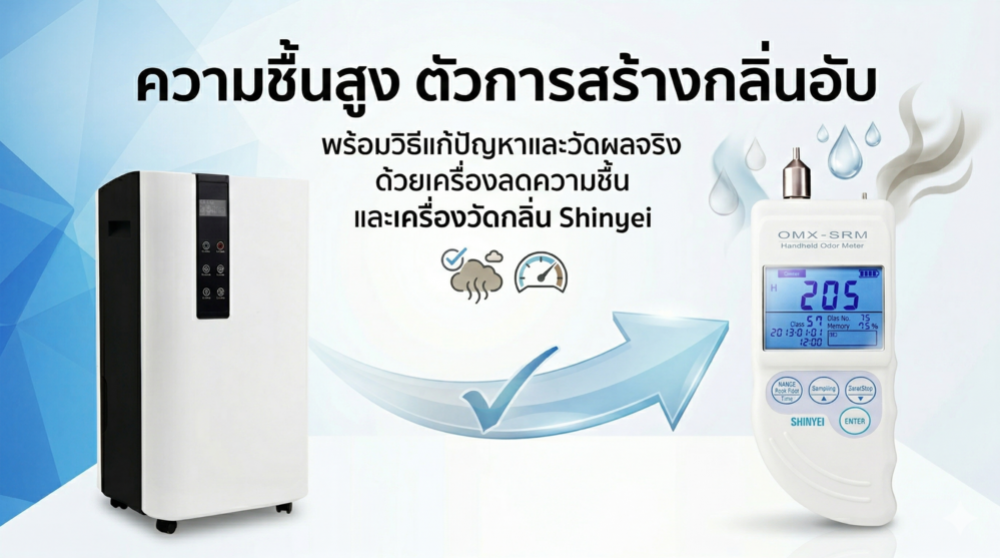 "ความชื้นสูง" ตัวการสร้างกลิ่นอับ พร้อมวิธีแก้ปัญหาและวัดผลจริงด้วยเครื่องลดความชื้นและเครื่องวัดกลิ่น Shinyei