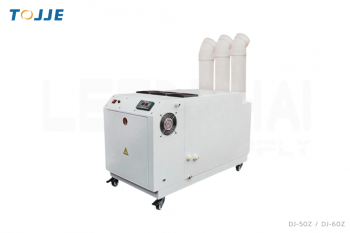 เครื่องเพิ่มความชื้นในอากาศยี่ห้อ Tojje รุ่น humidifier DJ series เพิ่มความชื้นในอากาศโดยใช้หลักการ Ultrasonic หรือ ใช้คลื่นความถี่ในช่วงความถี่เสียงในการสั่นโมเลกุลน้ำให้กลายเป็นไอ